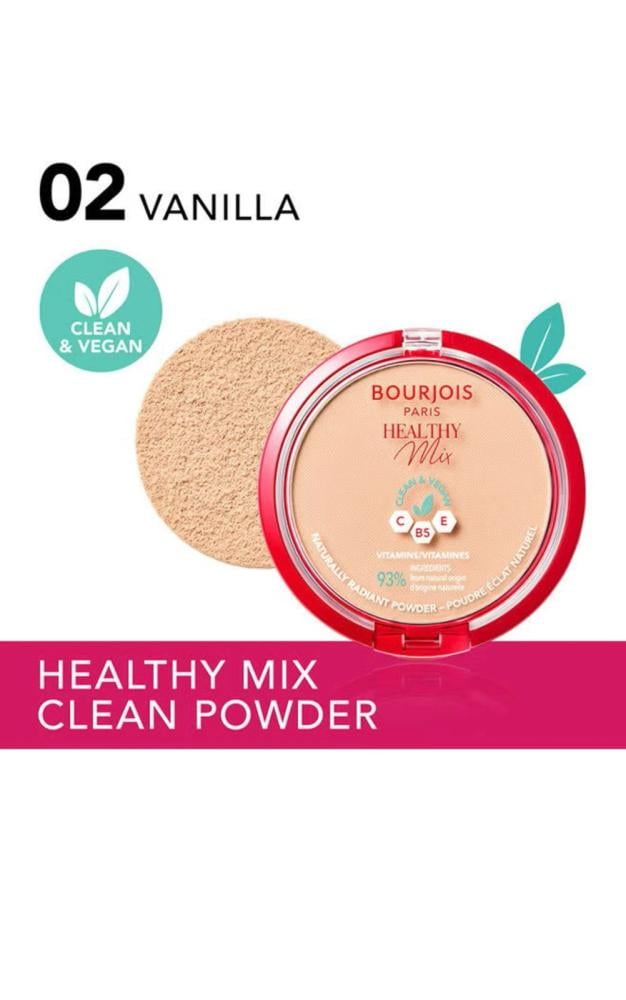 بودرة هيلثي مكس من برجوا تمنحك بشرة موحدة وصحية بلمسة طبيعية غير لامعة، وتغطية تدوم طويلاً بفضل تركيبتها المعززة بفيتامينات E و C و B5، التي تضفي نضارة وإشراقة لا تقاوم.