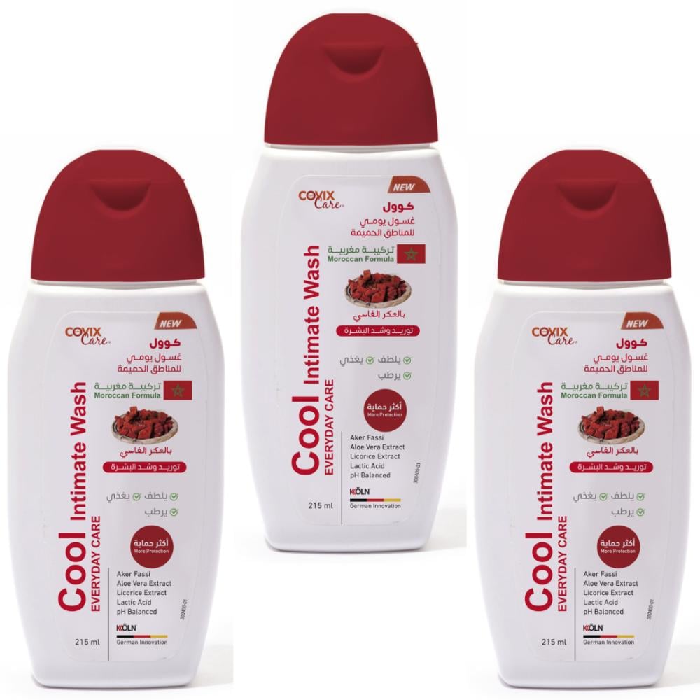 تمتع بعناية يومية لطيفة ومنعشة مع غسول كوفيكس كير كوول للمناطق الحميمة بالعكر الفاسي.-يتميز بتركيبته الطبيعية التي تنظف بلطف وتحافظ على التوازن الطبيعي للبشرة الحساسة. يحتوي على خلاصة العكر الفاسي المعروف بخصائصه المهدئة والمنعشة، مما يمنحك إحساسًا بالراحة والانتعاش طوال اليوم.