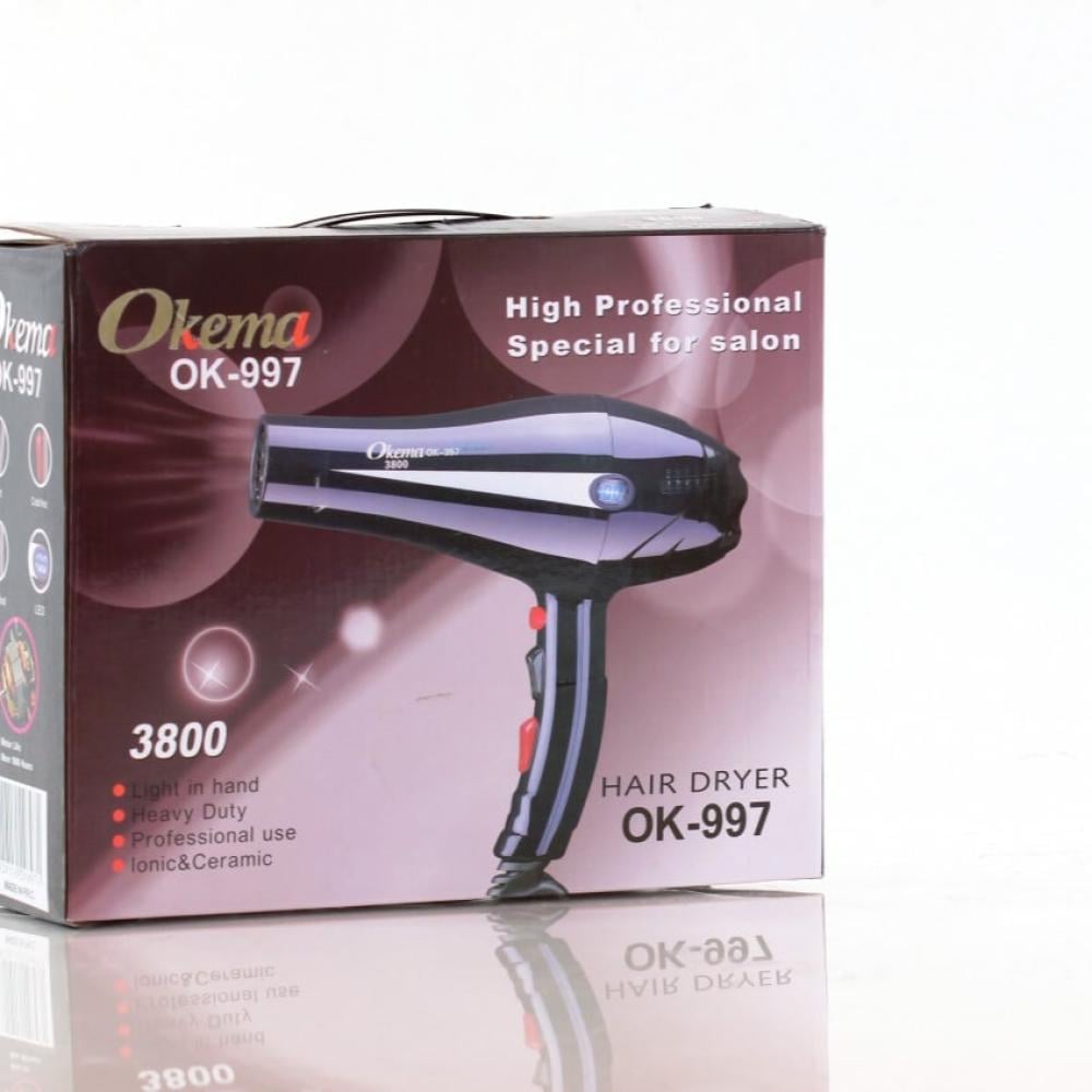 يتميز مجفف الشعر أوكيما OK-997 بتقنية الأيونات المتطورة التي تساعد على تقليل تطاير الشعر ومنحه لمعانًا صحيًا، مما يوفر تجفيفًا سلسًا دون إتلاف الشعر.